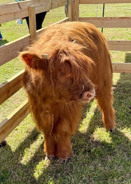 This week, we enjoyed a beautiful, warm, sunny Saturday at the local Scottish festival. There were highland games, a parade of the clans complete with banners and kilts, and a lovely, moo-ey, hairy coo (above).